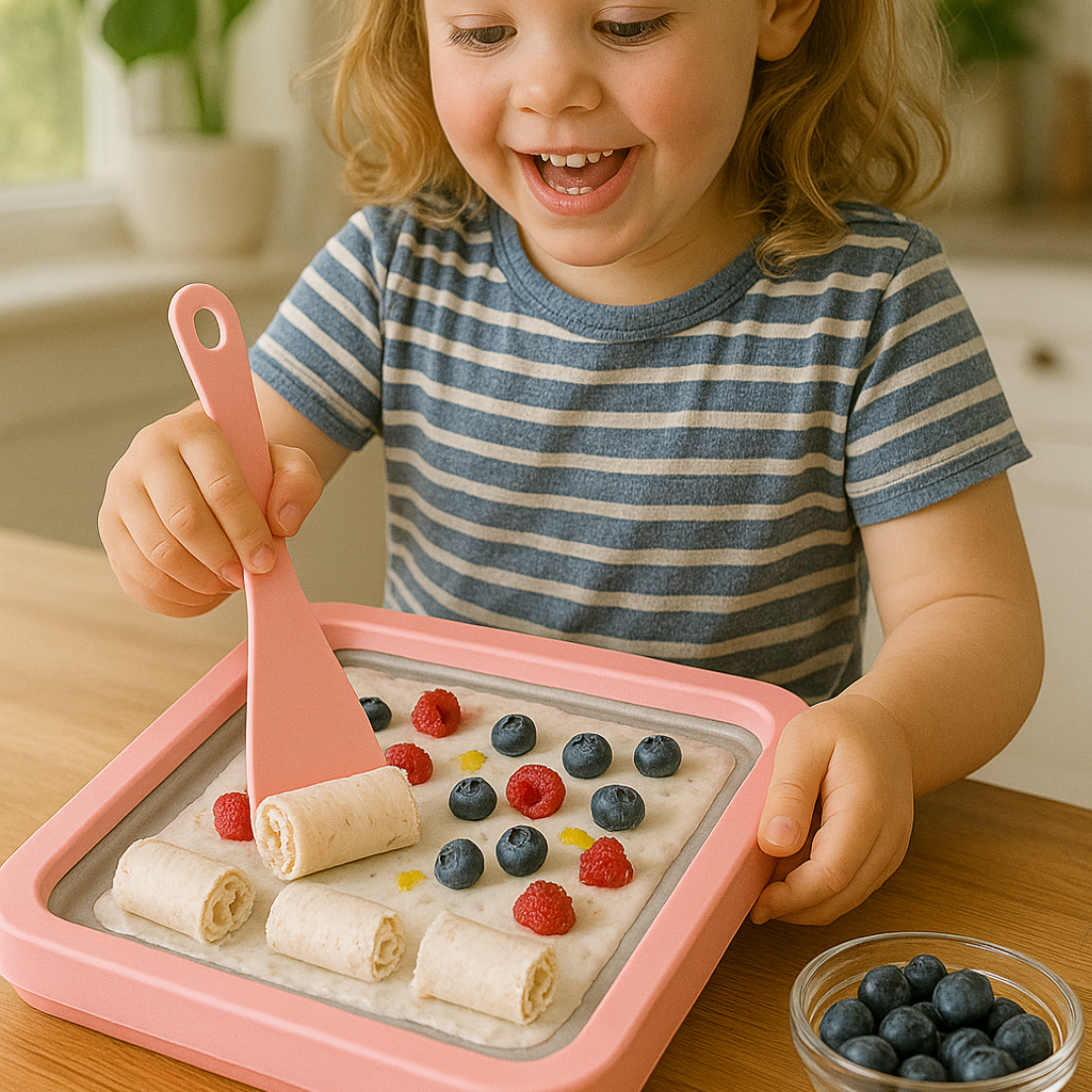 Create your own rolled ice cream at home in minutes, no mess, no machines, just fun.